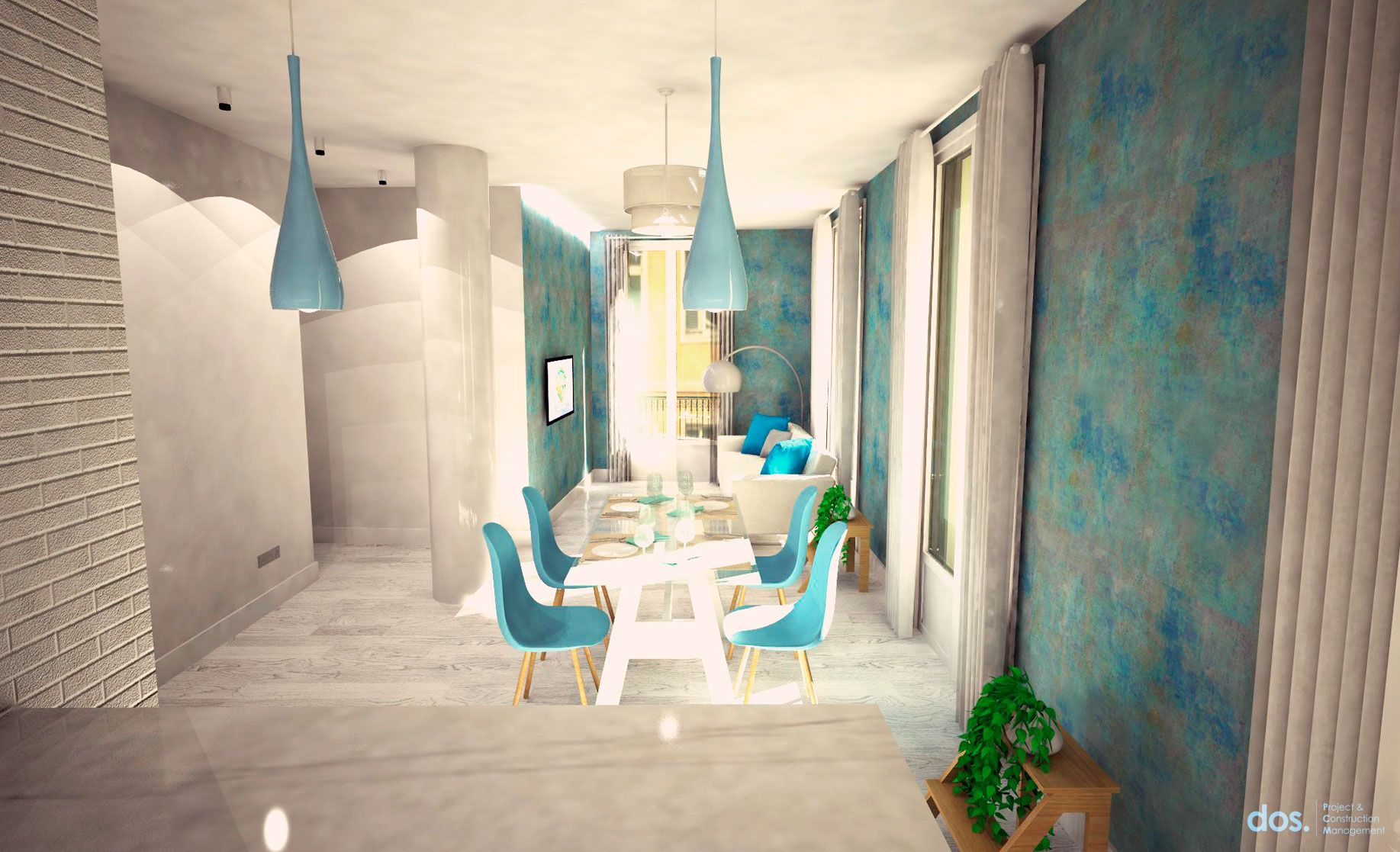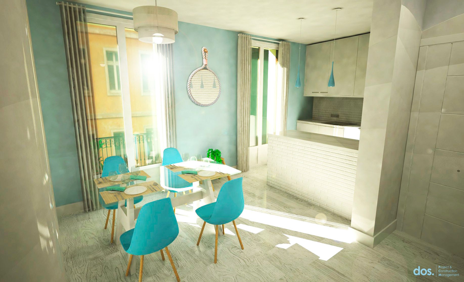 Se rehízo toda la distribución de la vivienda, dando un espacio abierto a la cocina integrada en salón, para potenciar la luz que entraban por los ventanales de principios de siglo XX.