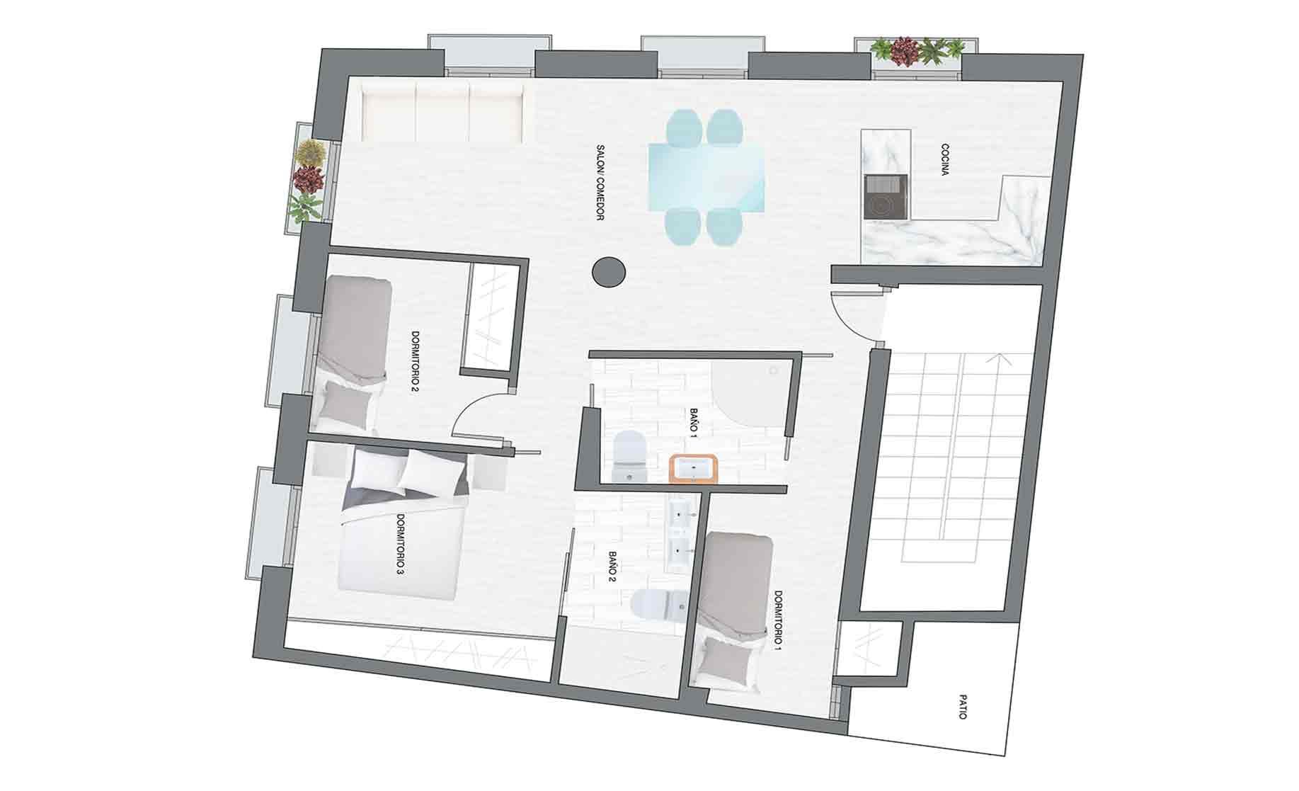 En este caso, la propiedad tenía una vivienda en el centro de Madrid para arrendar, por lo que quería darle un aire actual, con la intención de que el espacio fuera ideal para personas jóvenes.